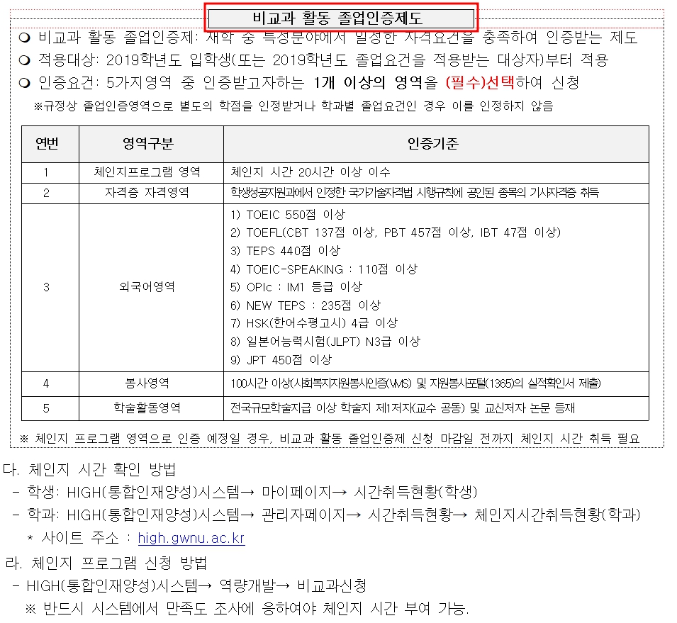 비교과 활동 졸업인증제도