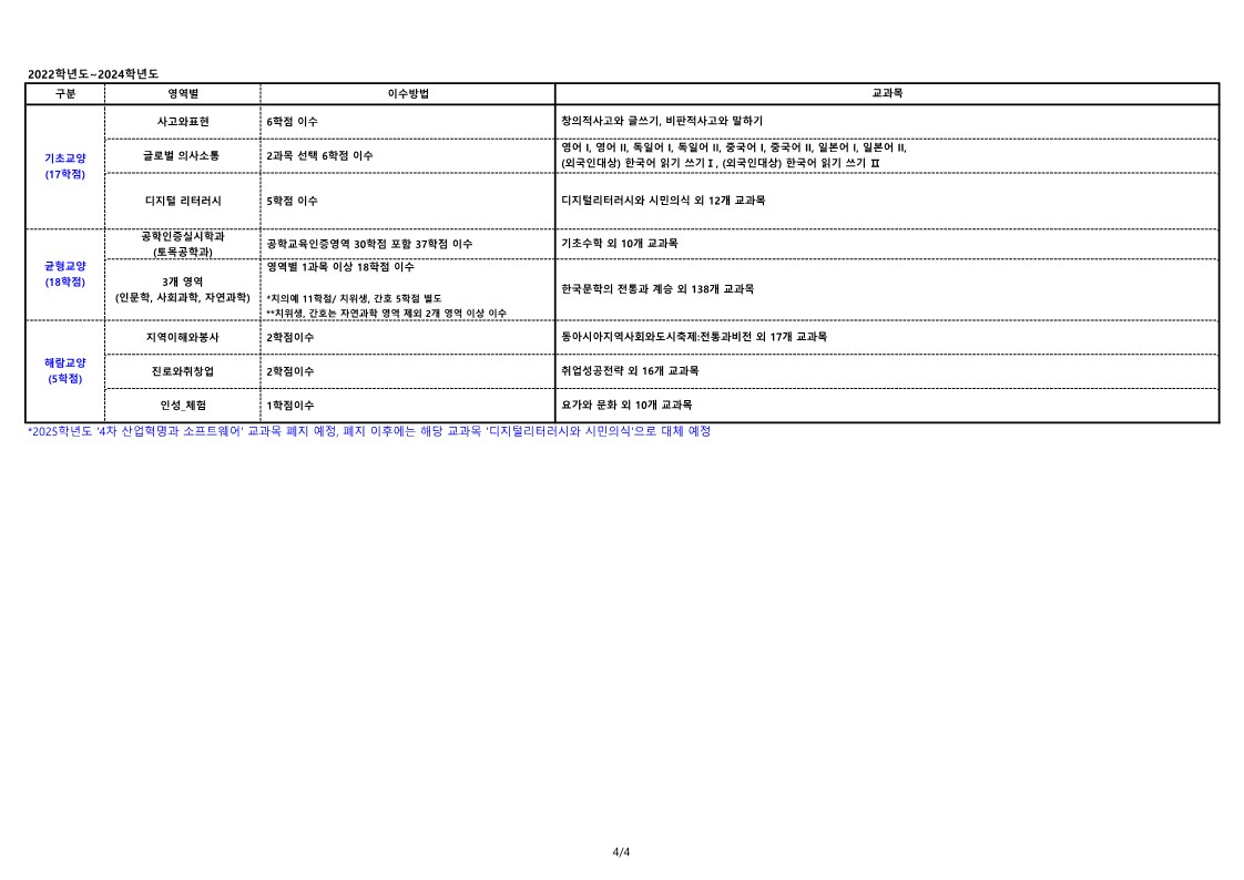 2024학년도 교육과정 개편에 따른 교양 경과조치 안내