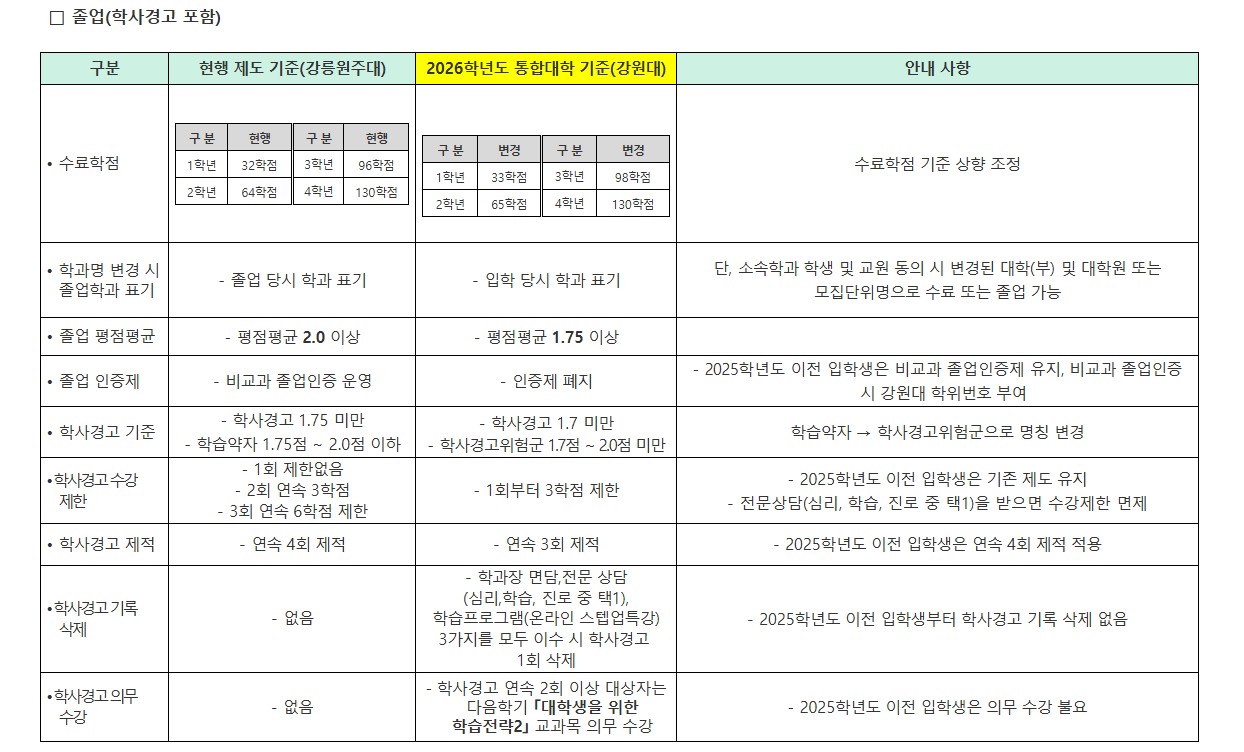 2026년 통합대학 교육과정 및 학사제도