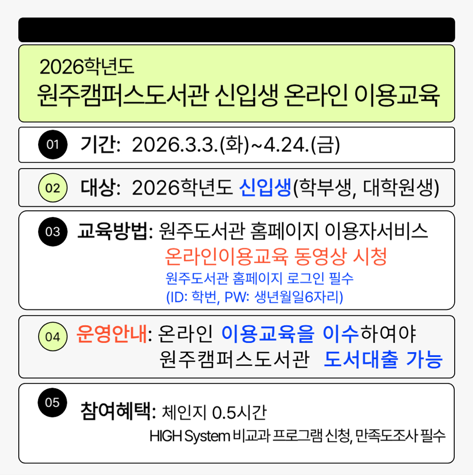 2026학년도 원주캠퍼스도서관 신입생 온라인 이용교육