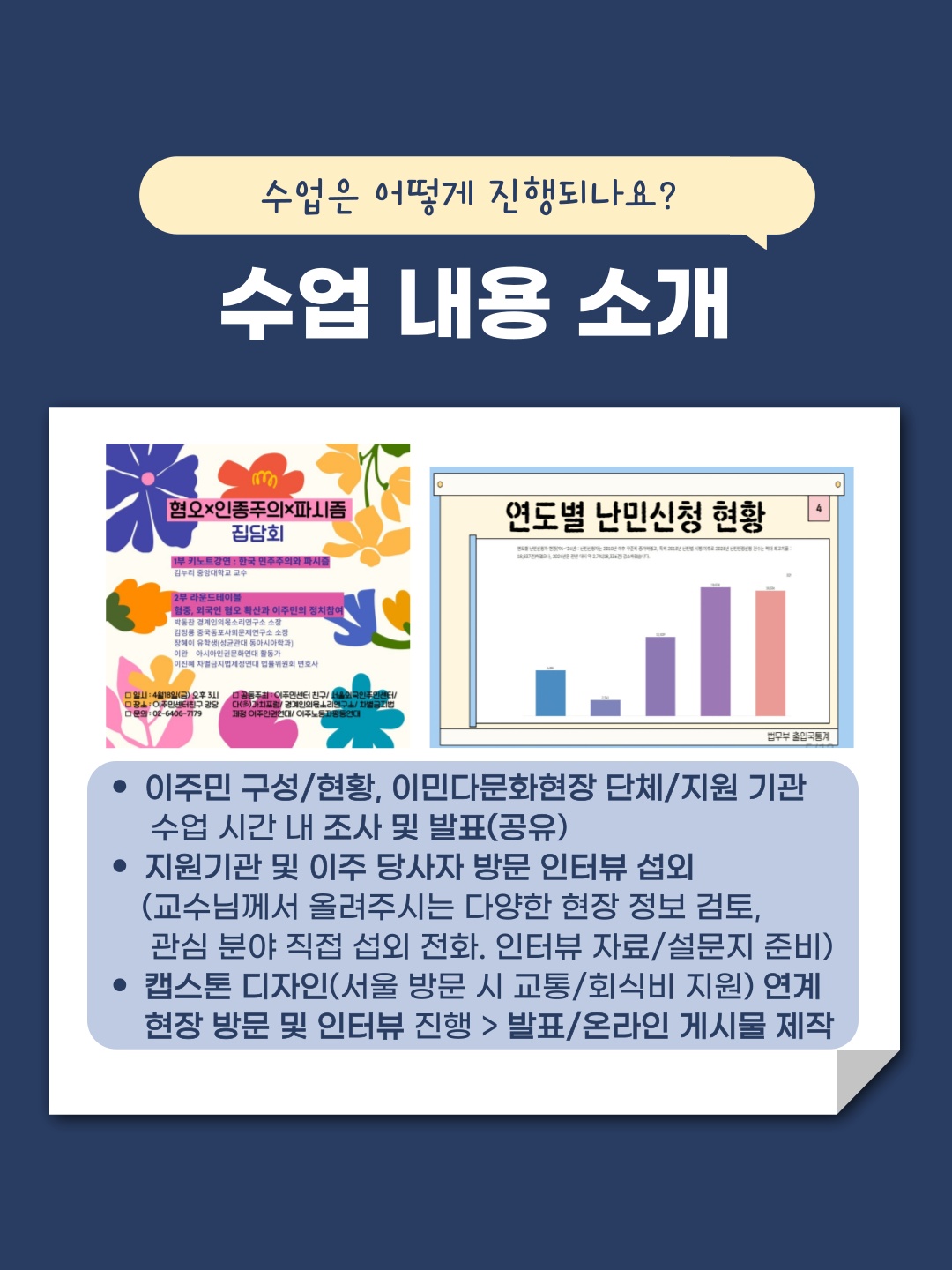 *2025년 1학기 전공선택 과목으로 개설된 <이민다문화현장세미나> 수업의 결과물입니다!